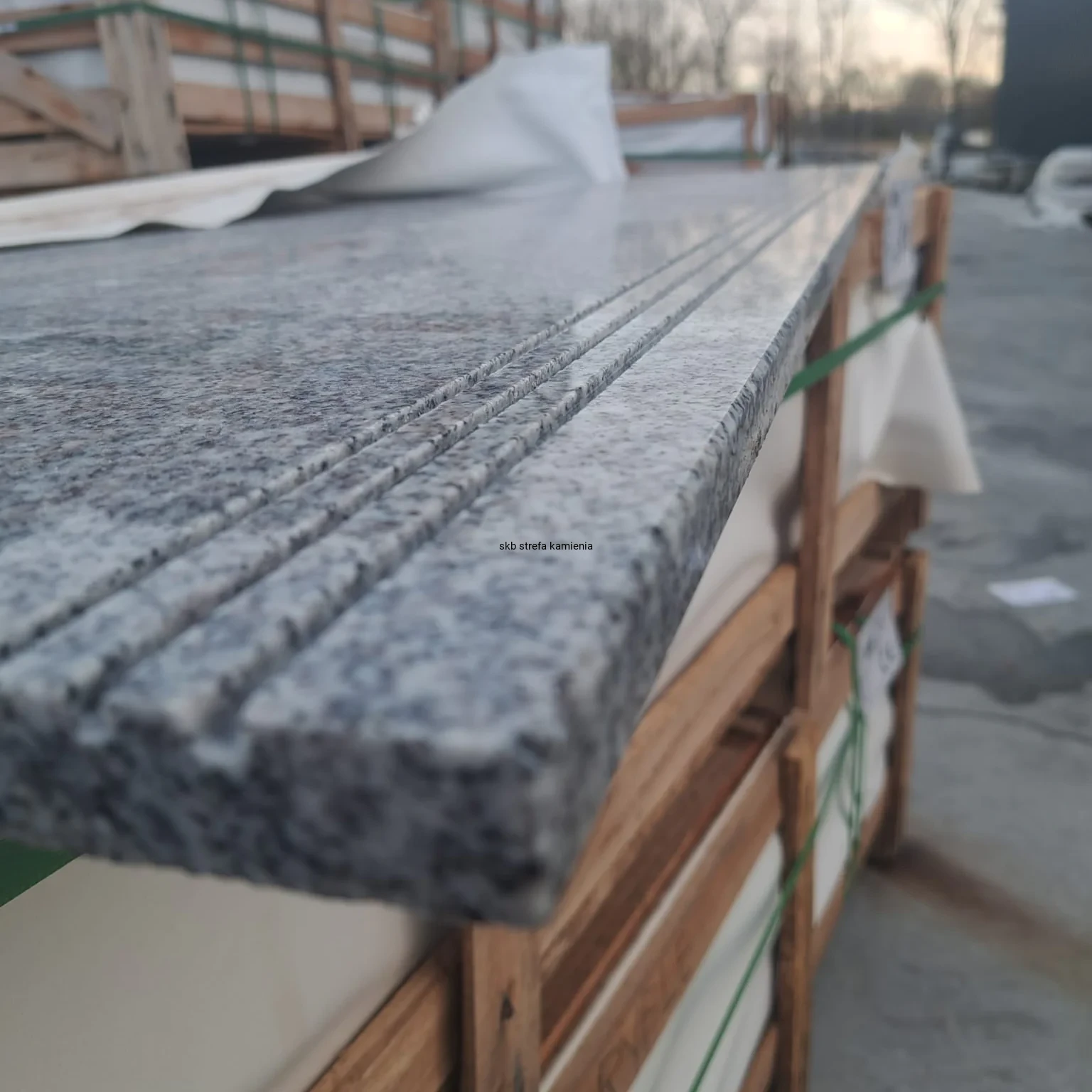 Stopnica granitowa szara poler ryflowana G603 150x33x2 cm
