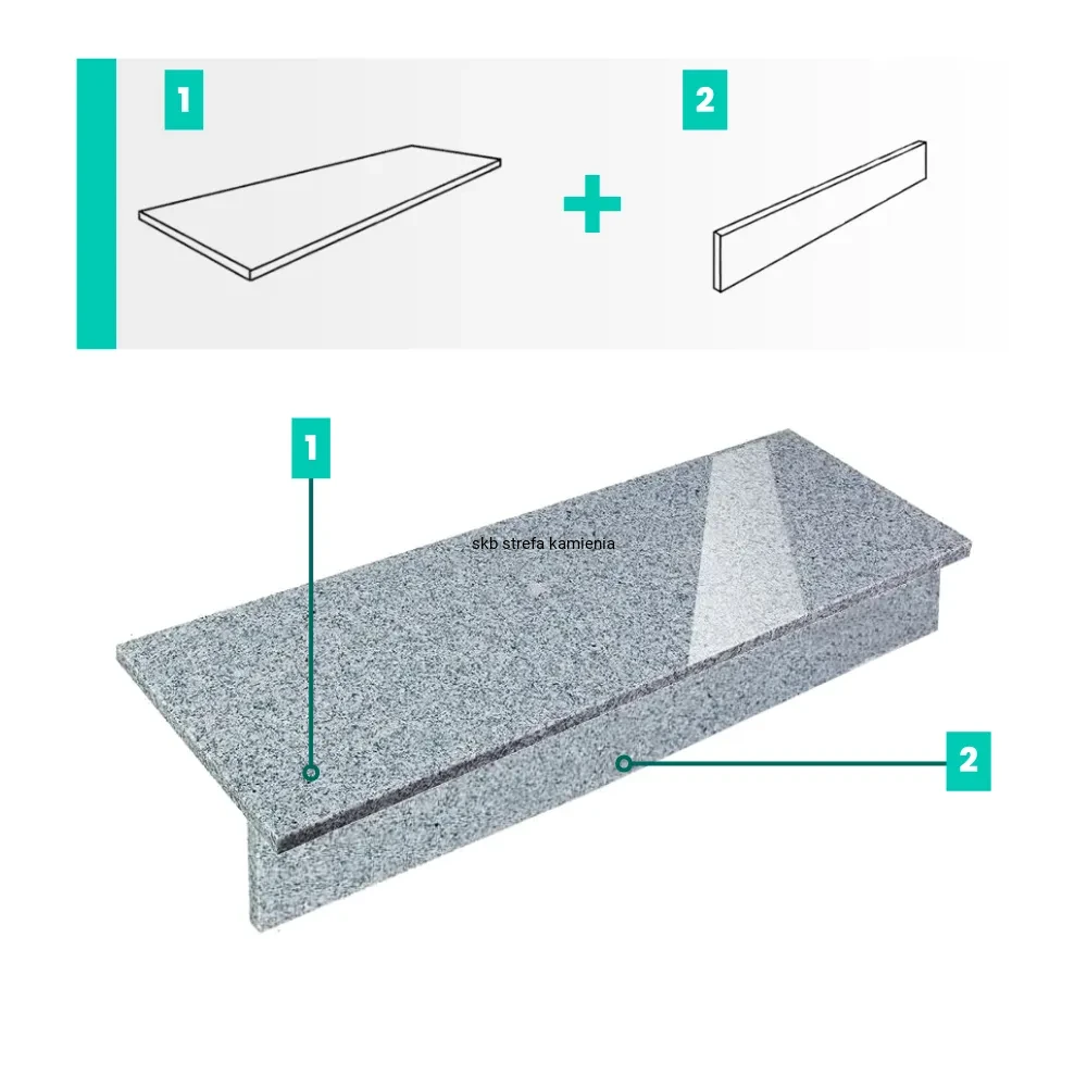 Zestaw Stopnica - Stopień + Podstopień Granitowy G603 150x33x2 / 150x15x2 Polerowany
